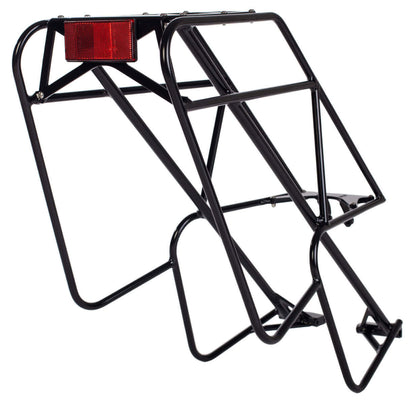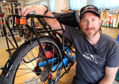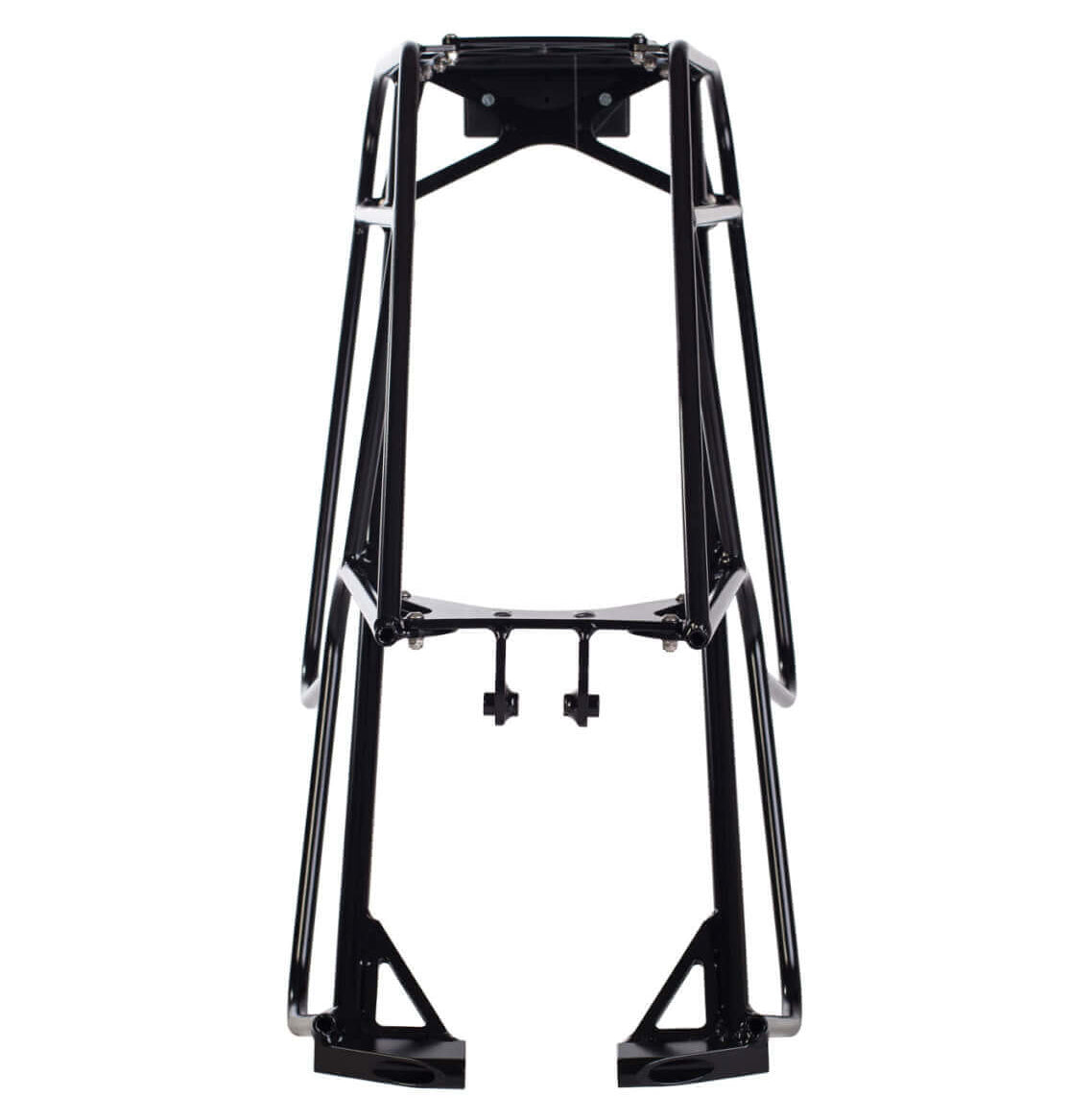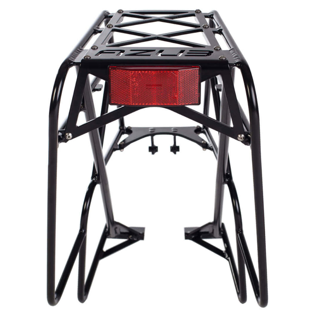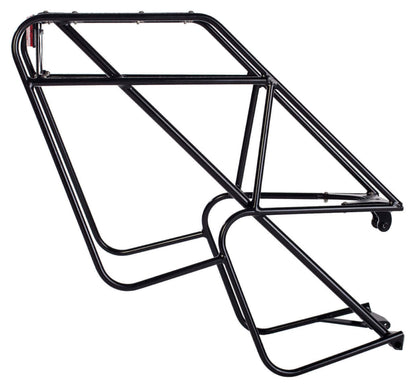 There is nothing bigger than the King Rack in the world of racks for recumbent trikes. This super-sizing provides both stability when carrying heavy loads, and the option to load two pairs of classic pannier bike bags (front and rear) on a trike with a 26” wheel and rear suspension such as the Ti-Fly X. This capability is ideal for even the most severe conditions found on long and demanding expeditions.