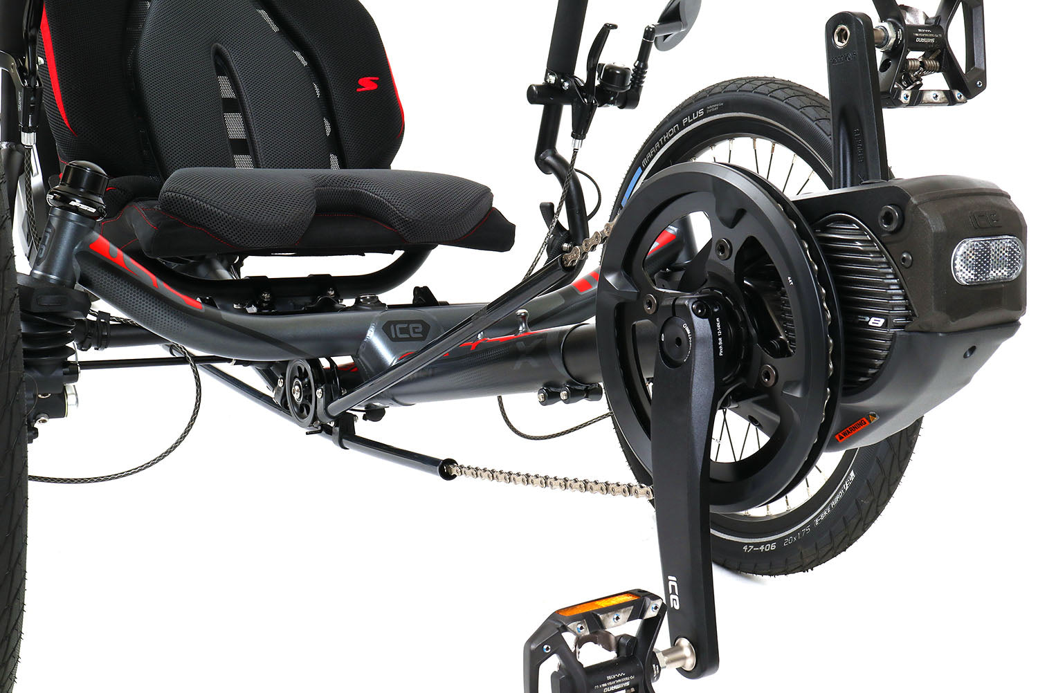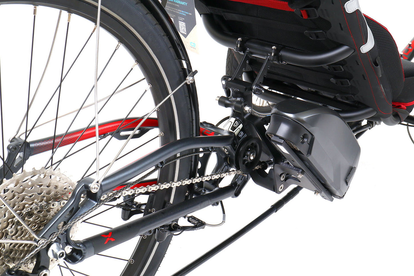 Shimano STEPS is a perfect choice for electric assist. It feels like you are riding with a tailwind at all times. And the best part is you control the "Tail Wind." With the integrated motor mounted at the front of the trike, the battery mounted under the trike's seat, a handlebar-mounted computer and controller for easy access, and a neat well-protected wiring loom, the whole system blends in and keeps your trike looking great.