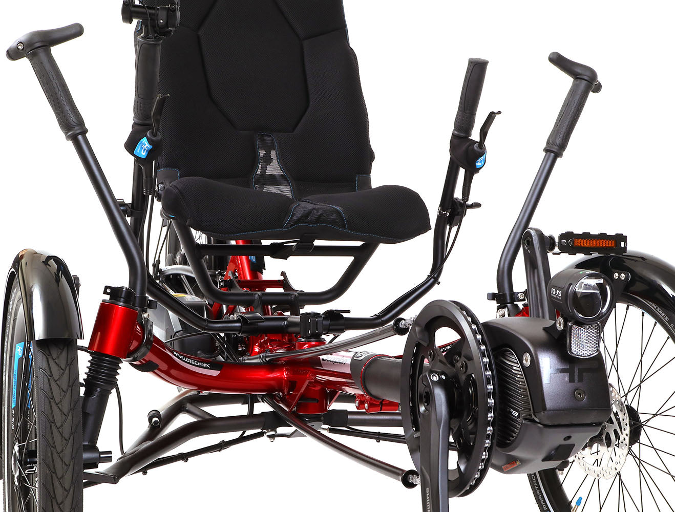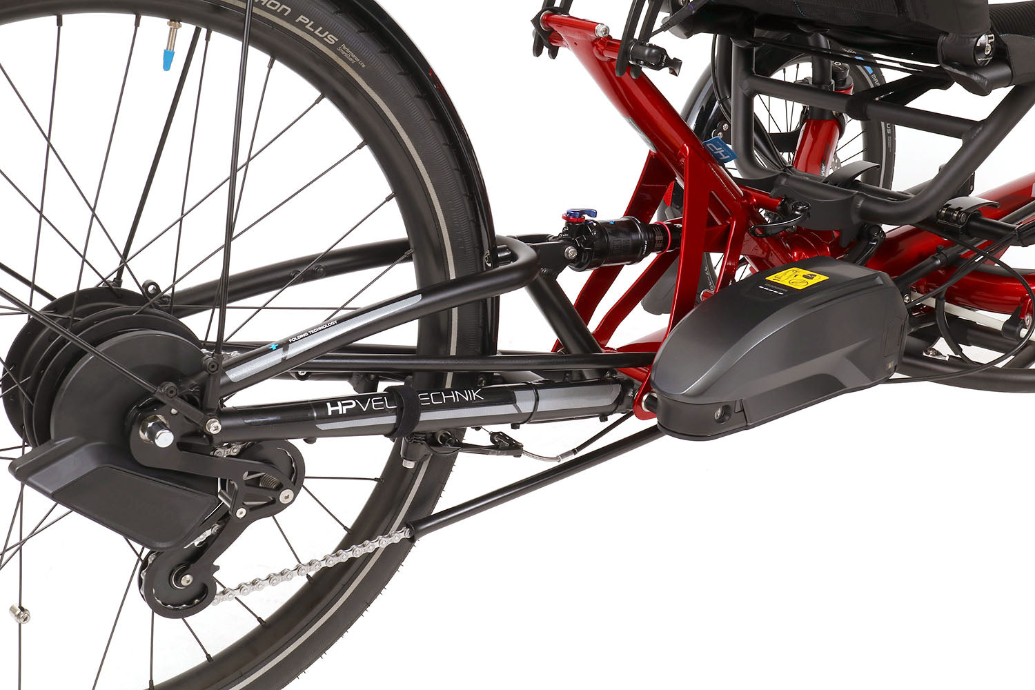 Higher, wider, more comfortable, the designers at HP Velotechnik bring you the SUV of the trike world. While situating you on this high seated vehicle, you will have an extraordinary over-view in almost every situation. A seat height of 17" will give you a commanding view and ease of entry and exit.