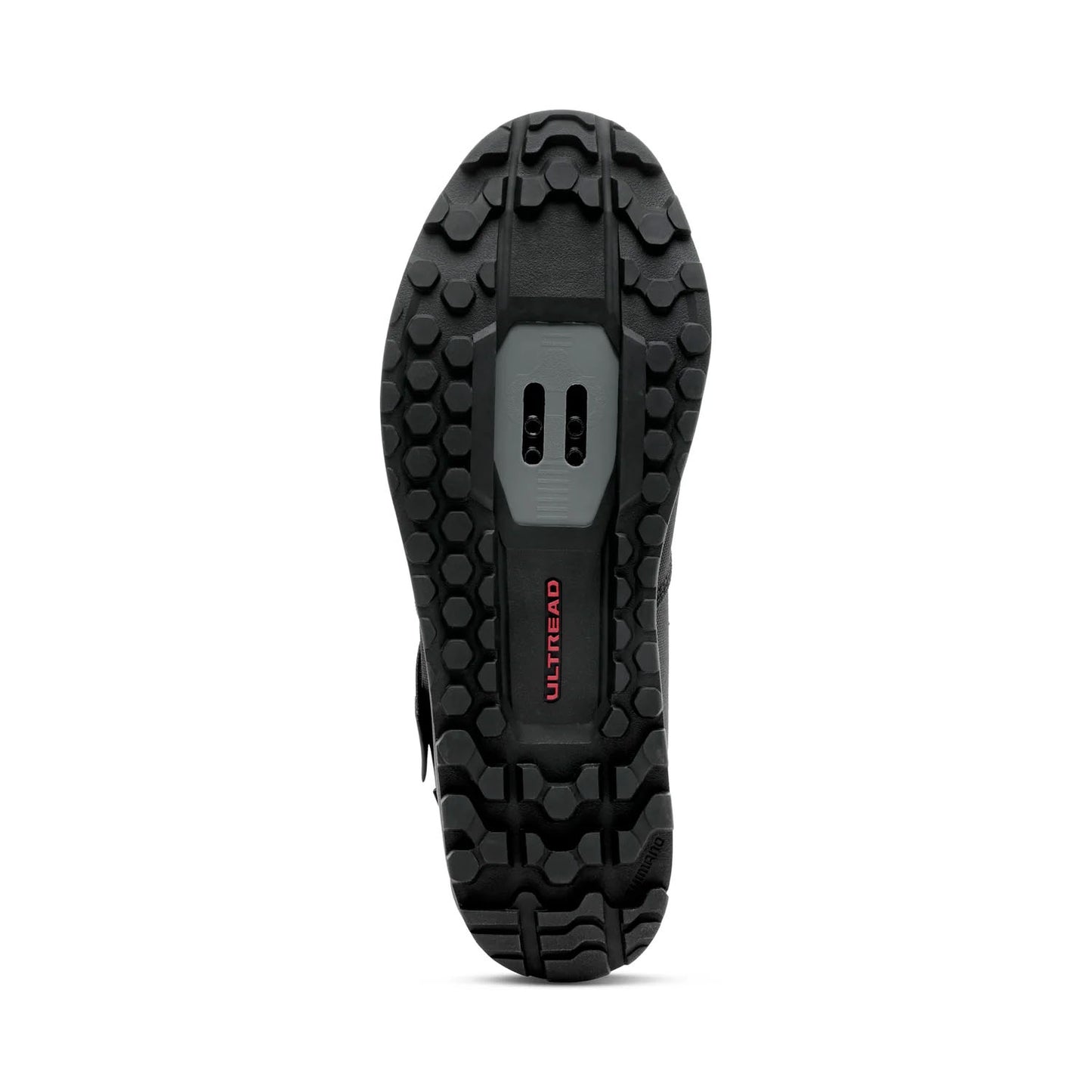 Confidently tackle technical terrain with the trail-ready GE5 gravity shoe. It features a unique TORBAL 2.0 midsole that allows the heel section to move torsionally, maintaining full range of motion for improved comfort, fluidity, and on-bike control. Enduro-optimized ULTREAD GE outsole delivers superior grip on slippery hike-a-bike sections, and has a molded pedal channel that provides a stable shoe-to-pedal connection even when riding unclipped.