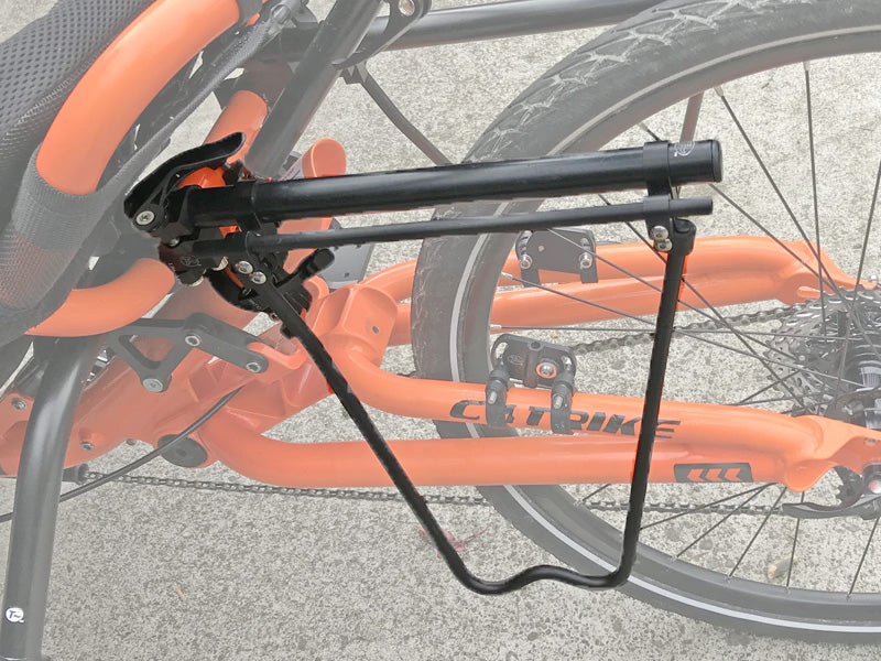 This rack features a quick-release that can be easily removed for travel and transport. Ride with just one side of the rack for short rides or commuting. Ride with both sides for longer rides, touring, or even grocery shopping. Easy to install and remove and transfer from trike to trike.