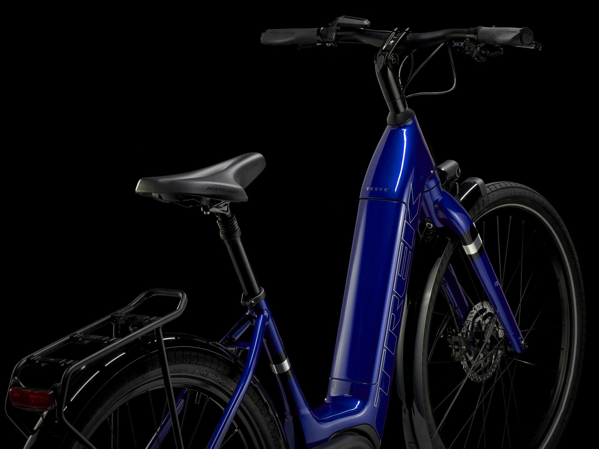 Verve+ 3 Lowstep is an electric hybrid bike that gives your daily cruises, commutes, and workouts a boost. It's equipped with a Bosch pedal-assist smart system that's powerful, reliable, and pairs with your smartphone for maps, activity tracking, and more. It's powered by a fully-encased battery that looks sleek and keeps balance top priority. This e-bike comes ready to roll with parts that put your comfort and safety first, like a road-smoothing suspension seatpost, wide, stable tires, and front and rear lights.