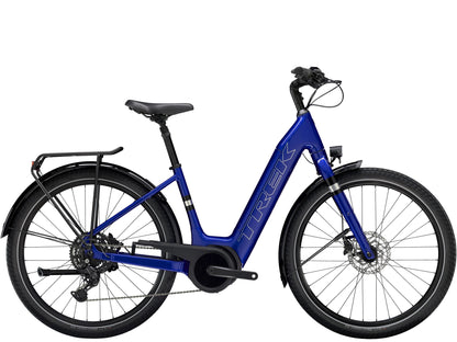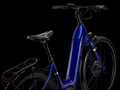 A lightweight aluminum frame with lowstep geometry, a Bosch Performance Line Cruise (250W, 75Nm) motor capable of sustaining speeds up to 20mph, a Bosch PowerPack 545Wh battery that's fully encased in the frame, and a Bosch Purion 200 controller. Plus, a 9-speed Shimano CUES drivetrain, hydraulic disc brakes for all-weather stopping power, a suspension seatpost, stable 27.5" wheels with wide, 2.4" puncture-resistant tires for extra traction, ergonomic grips, a kickstand, front and rear lights, and a MIK rear rack and fenders.